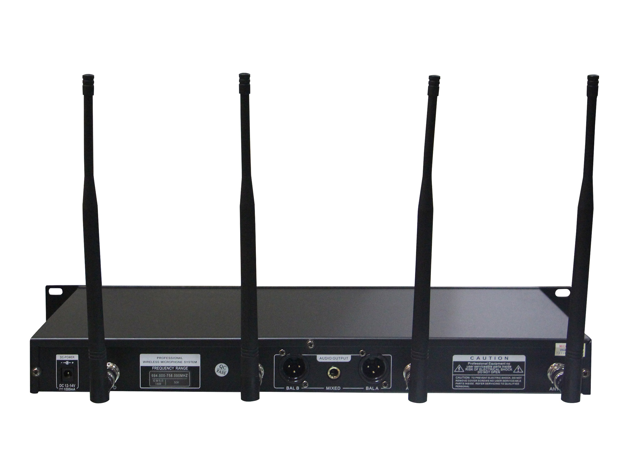 CARRIER FREQ : UHF = 694 - 703 MHz / 748 - 758 MHz, RX : True Diversity