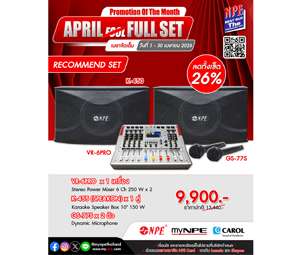 ชุดคาราโอเกะ 2 (VR-6PRO(1) + K-455(Speakon)(1) +GS-77S (2) + สายไมค์ MIC-3 (2) )